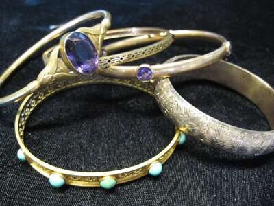 Group of five yellow gold and gold filled bangle bracelets 19th/20th century