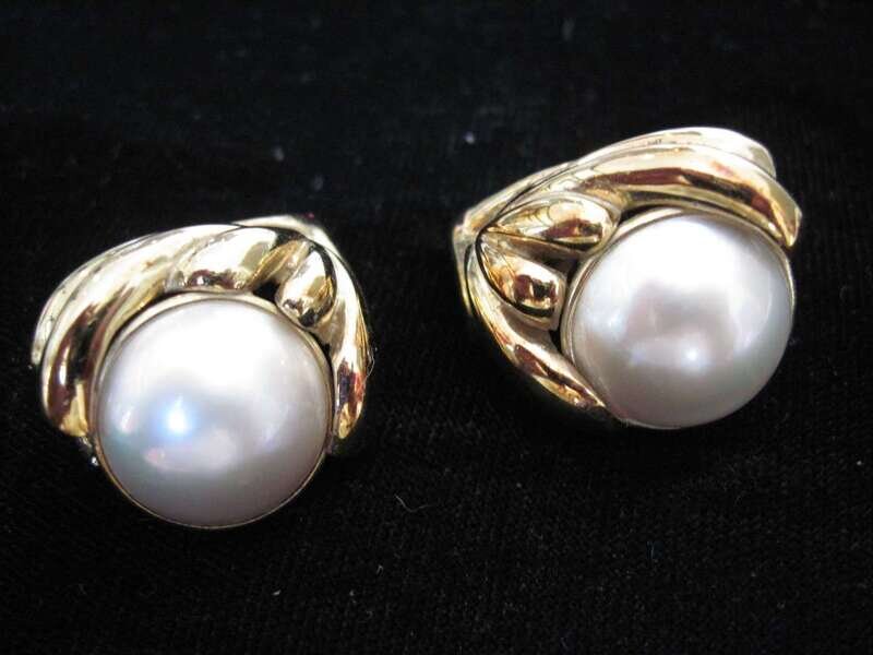 14 karat yellow gold freeform mabe pearls earrings