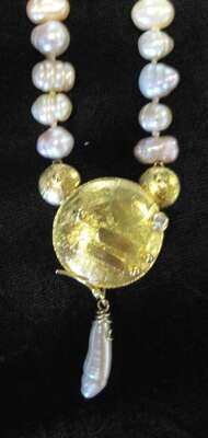 18 karat freshwater pink pearl and diamond necklace, Caroline Streep