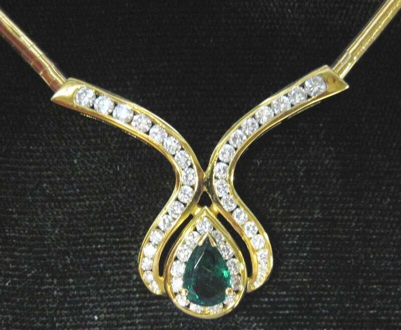 18 karat yellow gold emerald and diamond drop necklace contemporary