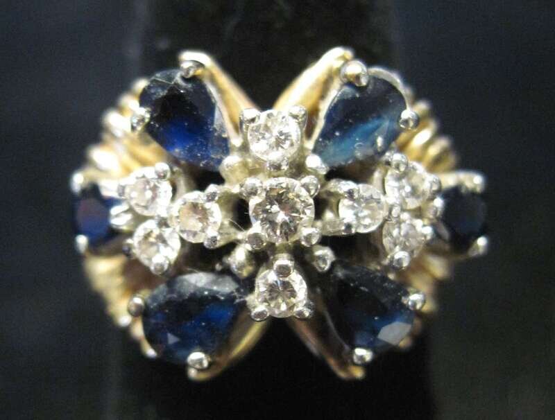 14 karat yellow gold sapphire and diamond cluster ring