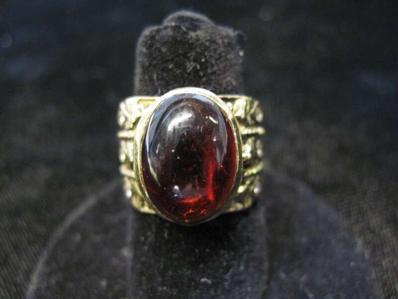 18 karat yellow gold cabochon garnet ring