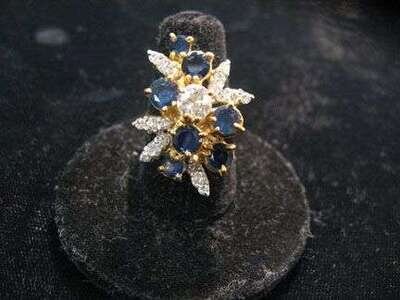 18 karat yellow gold sapphire and diamond cluster ring