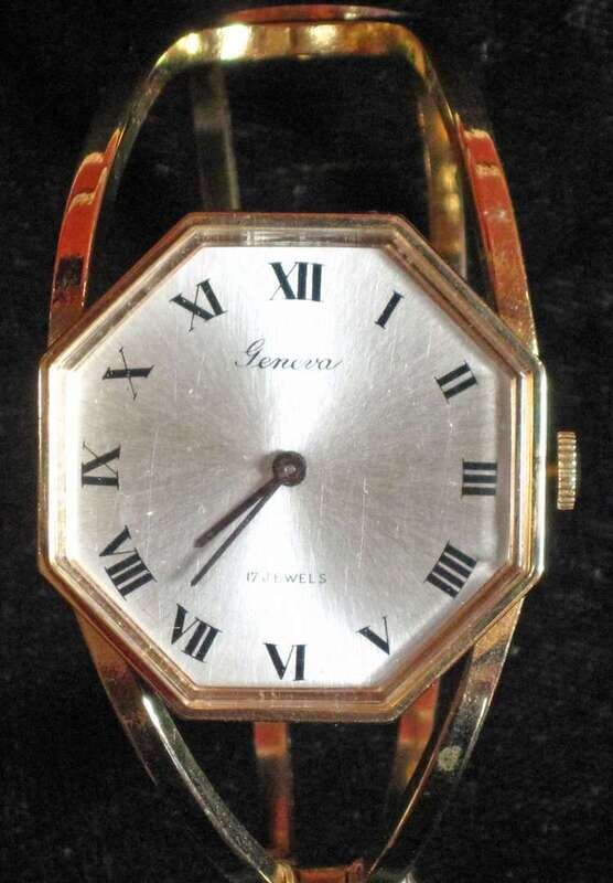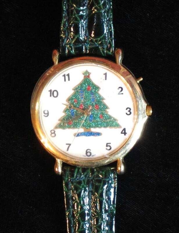 Geneva octagonal "bangle", lady's 14 karat rose gold Elgin, lady's Movado, Little Switzerland, Regnal calendar, plastic, lady's with gold colored face, Swatch, Xandu Christmas tree, Customtime, Whitney, Arnex and another Christmas tree, 13 pcs.