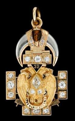 Large pendant displays a carved cat's-eye face with yellow gold Egyptian style mount, double headed eagle displays single marquise cut diamond followed by two Old Mine cut diamonds, framed by Old Mine cut diamonds.