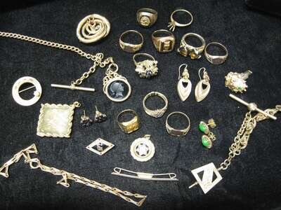 Group of gold and gold filled jewelry and settings 20th century