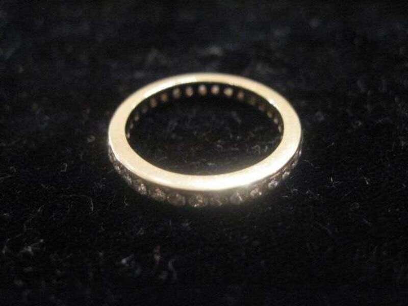 Chip diamond set yellow gold wedding band style ring.