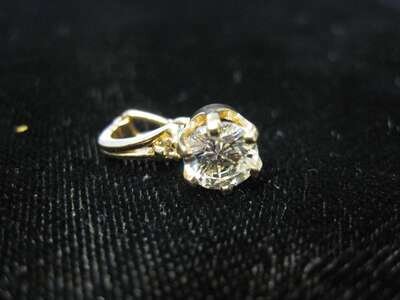 14 karat yellow gold set 1 carat round cut diamond.