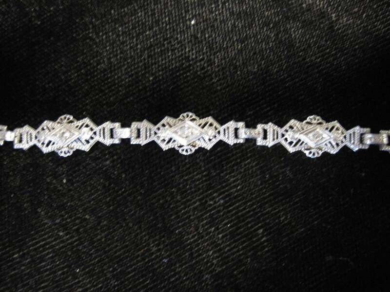 White gold and diamond filigree bracelet in the style of art deco