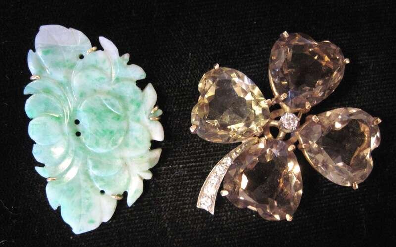 Together with a 14 karat and jade pin.
