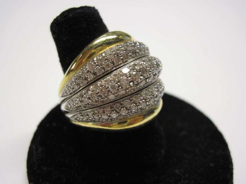 Three bands containing about 144 graduated round diamonds in three bands with a total weight approximately 3.5 carats.
