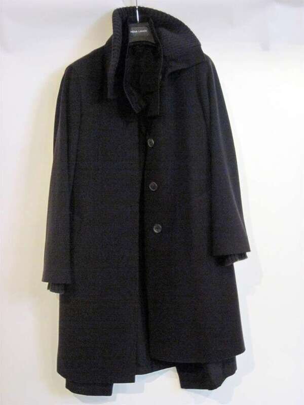 Espresso brown wool outter coat with knit collar and cuffs, button down front, accompanied by light removable rain coat, also by Akris of similar color.