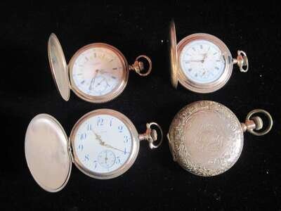 Four yellow gold filled hunting case pocket watches elgin, early 20th century