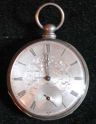 Key wind leaf engrave silver face with Roman numeral dial. subsidiary seconds dial.