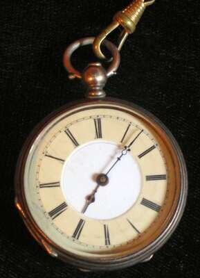 Lady's open face pocket watch with chain 19th century