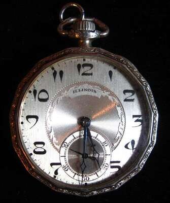 White gold filled case open face pocket watch illinois watch co., 20th century