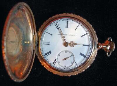 Yellow gold filled hunting case pocket watch elgin national watch co., g.m. wheeler, 20th century