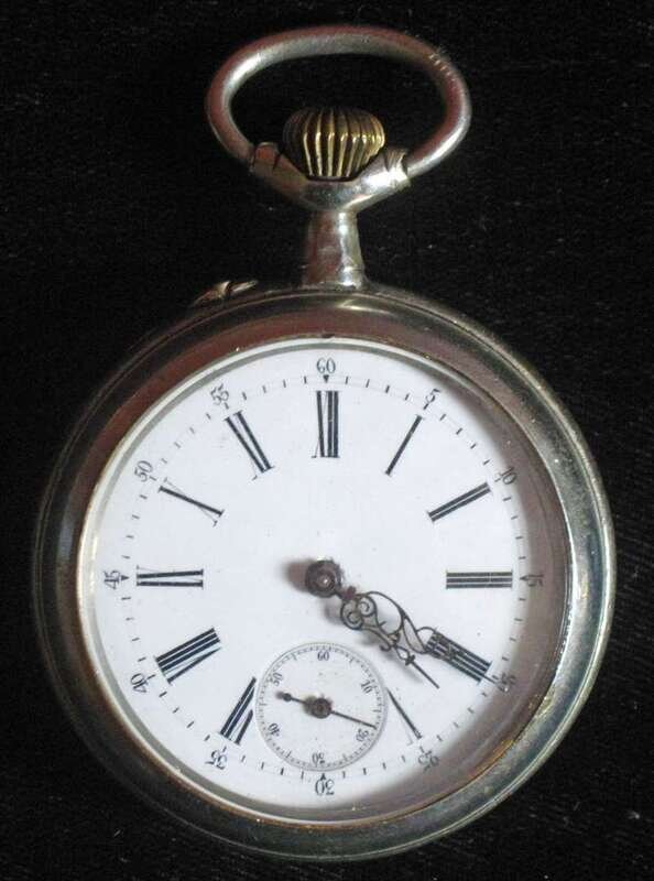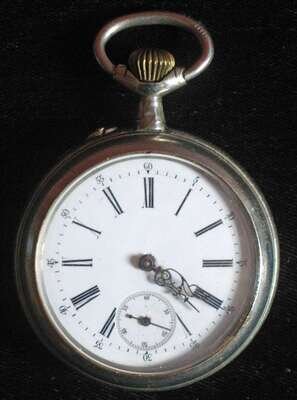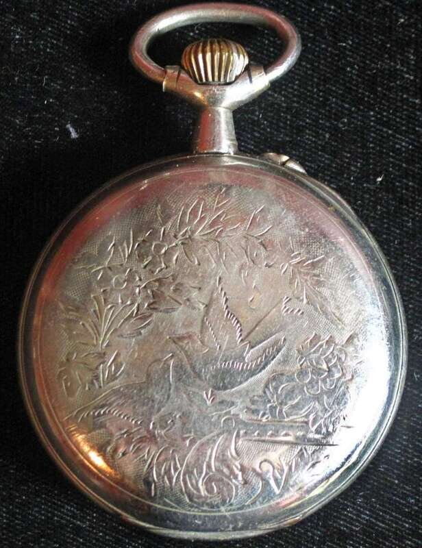 Black on white Roman numeral dial, subsidiary seconds dial, back chased with the scene if a bird on a flowering branch.