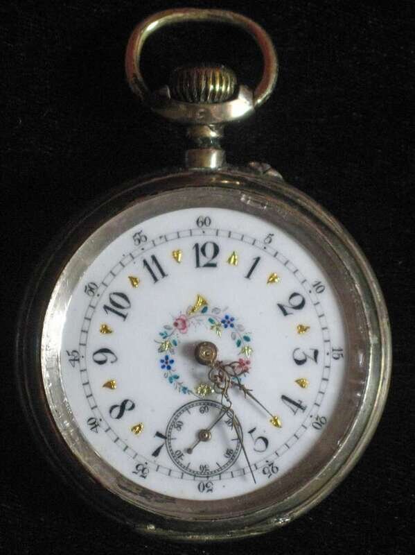 Black on white Arabic numeral dial, ring of enamel flowers.