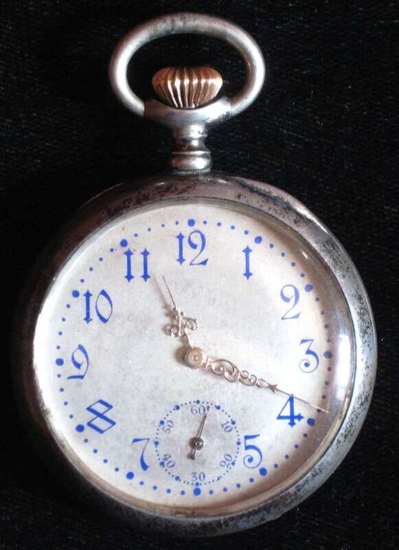 Silver plate and blue enamel open face pocket watch 19th/20th century