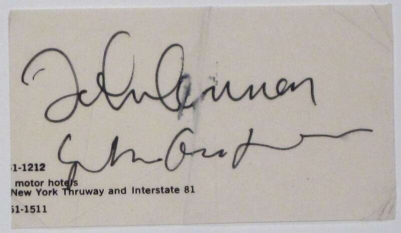 Cut document featuring signatures of John Lennon and Yoko Ono in black marker.