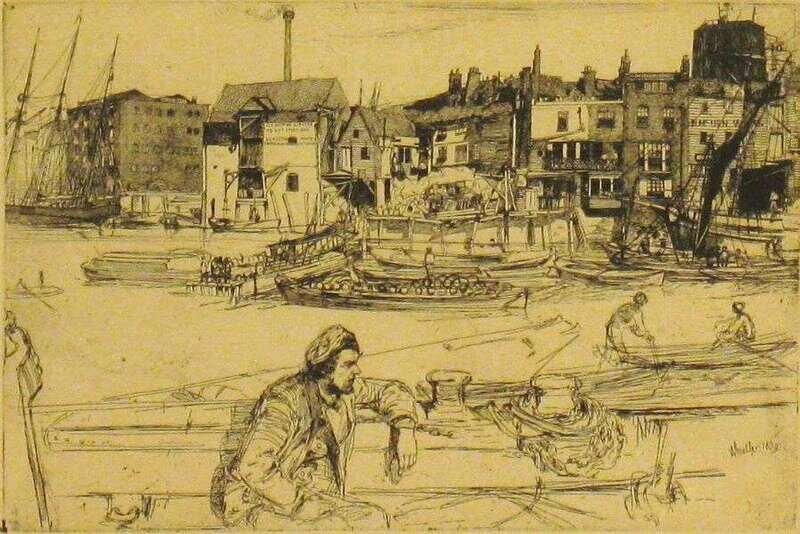 JAMES ABBOTT MCNEILL WHISTLER (AMERICAN, 1834-1903) "BLACK LION WHARF"