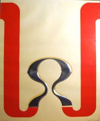Ca. 1965, pencil signed, from the edition of 200. Silkscreen and metal foil collage.