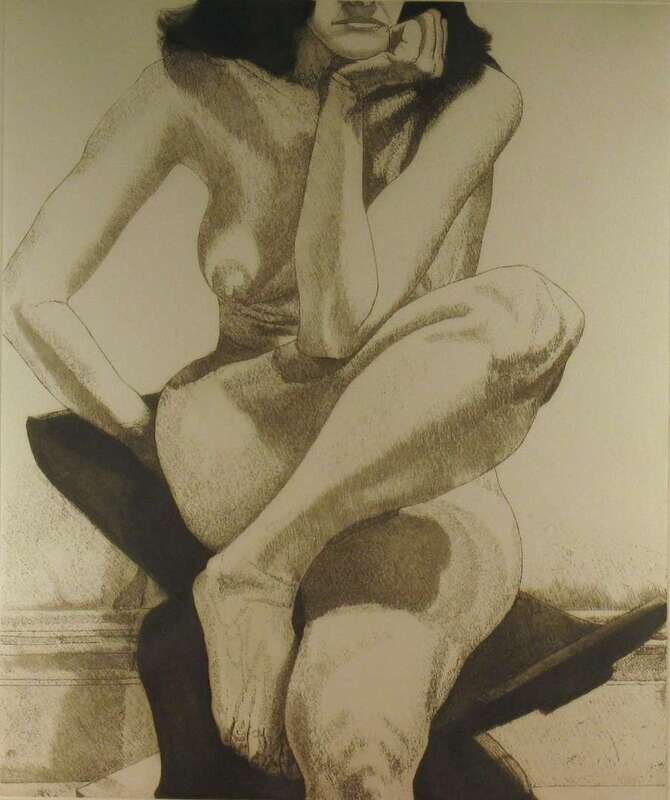 PHILIP PEARLSTEIN (AMERICAN B. 1924) "NUDE ON DAHOMEY STOOL"