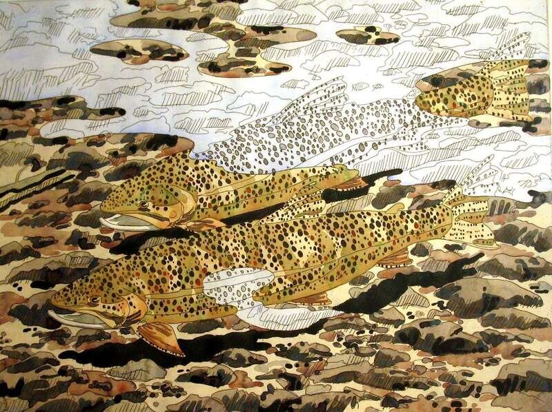 NEIL WELLIVER (AMERICAN 1929-2005) "TROUT AND REFLECTION"