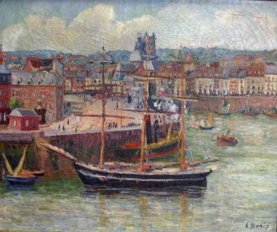 A. BONIN (19TH CENTURY) BOATS AT A HARBOR