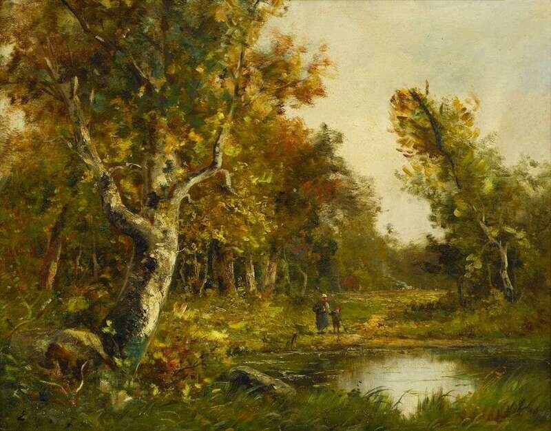 CONTINENTAL SCHOOL (19TH CENTURY) FIGURES AT FOREST'S EDGE, FOUNTAINBLEU