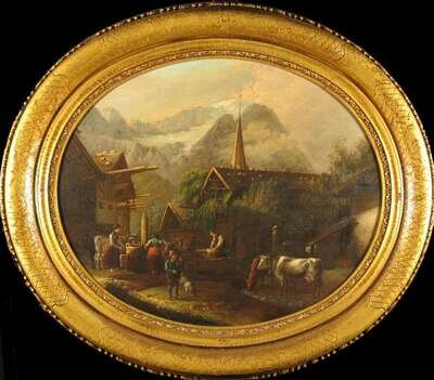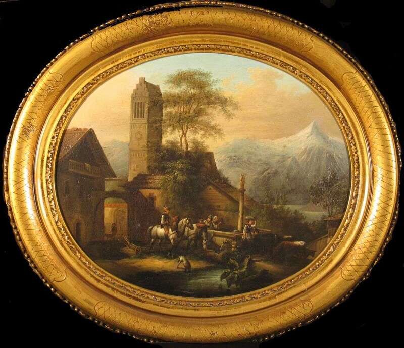TWO PAINTINGSGAUNERMANN (GERMAN 19TH CENTURY) "THE FOUNTAIN ANISTALL ON THE LAKE"