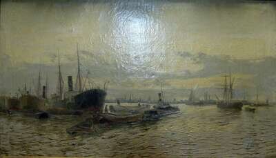 EDWIN FLETCHER (BRITISH 1857-1945) SHIPS AT DUSK