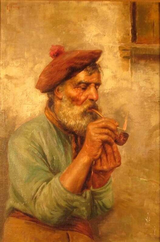 RAFFAELE FRIGERIO (ITALIAN 19TH/20TH CENTURY) MAN LIGHTING A PIPE