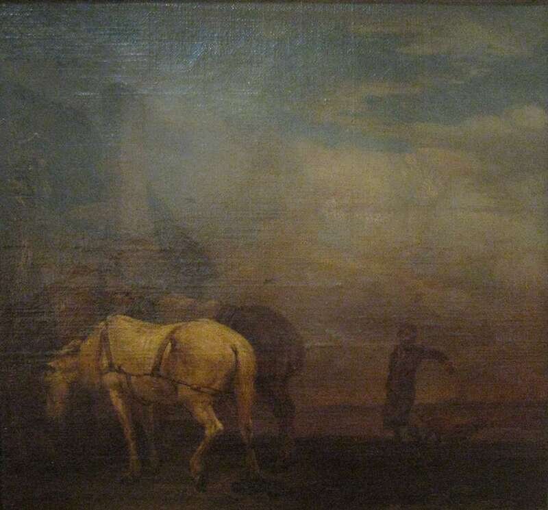 ALBERT JEAN ADOLPHE (AMERICAN 1865-1940) FEEDING THE HORSES