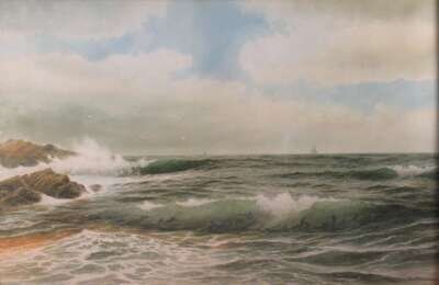 GEORGE HOWELL GAY (AMERICAN 1858-1931) SHIP OFF A ROCKY COAST