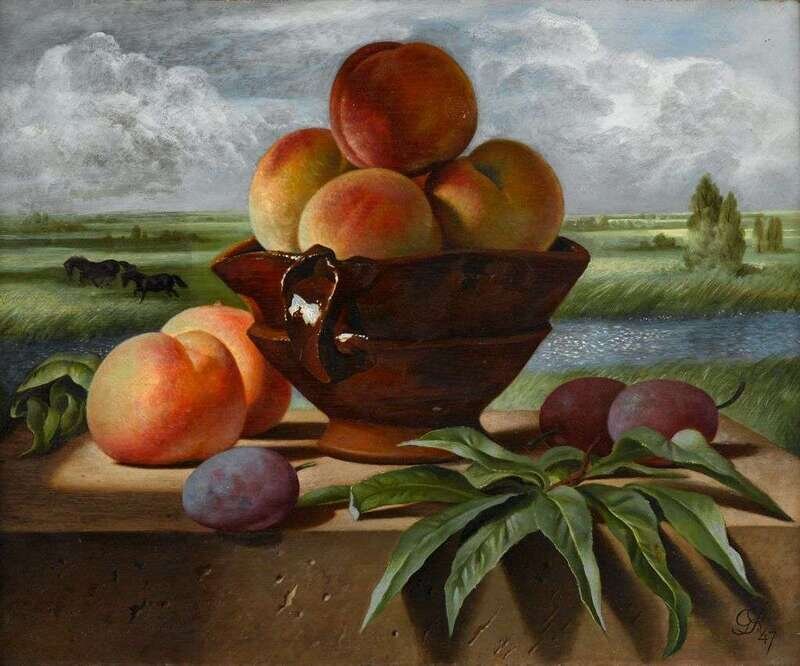 AMERICAN SCHOOL (19TH CENTURY) STILL LIFE WITH PEACHES AND PLUMS