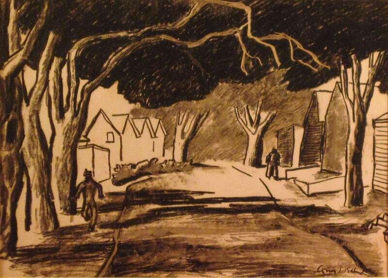 LOUIS KAHN (AMERICAN 1901-1974) TWO FIGURES ON A SHADED STREET