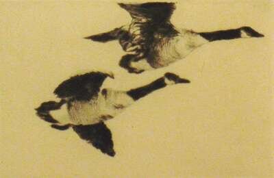FRANK WESTON BENSON (AMERICAN 1862-1951) "STUDY OF GEESE"