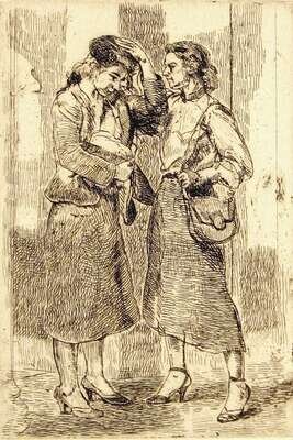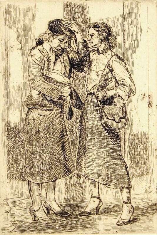 FOUR ETCHINGSISABEL BISHOP (AMERICAN 1902-1988) "REACHING FOR THE COAT SLEEVE"
