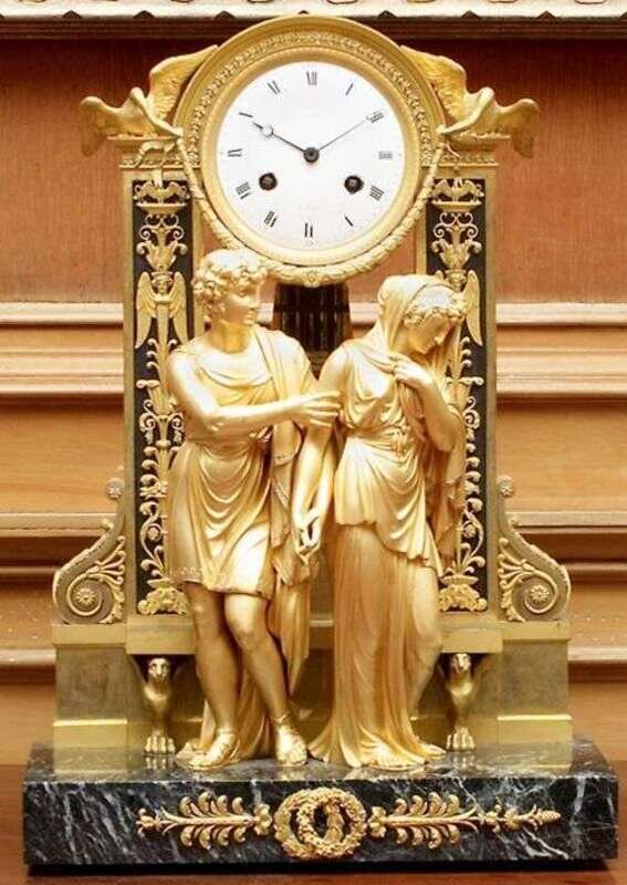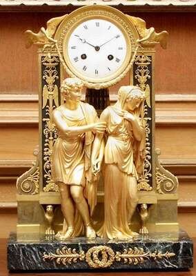 Fine Empire style figural gilt bronze and green marble mantel clock 19th century