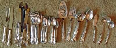 Including: Gorham silverplate partial flatware service consisting of 29 pieces. (150).