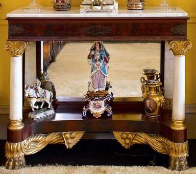 Classical style mahogany and marble pier table brand and stencil mark, annesley & co, albany, new york
