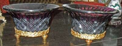 Pair of Bohemian purple flash glass and gilt metal mounted compotes 19th century