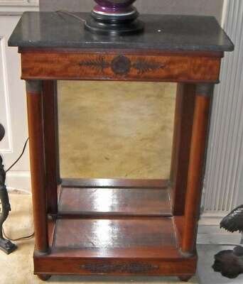 Pair of Empire style mahogany marble top side tables