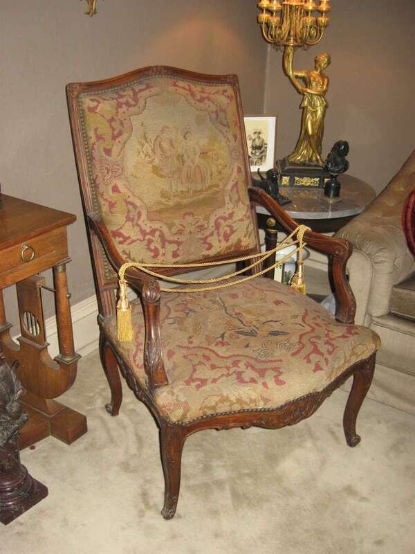 Regence period needlework upholstered chaise a la reine 18th century