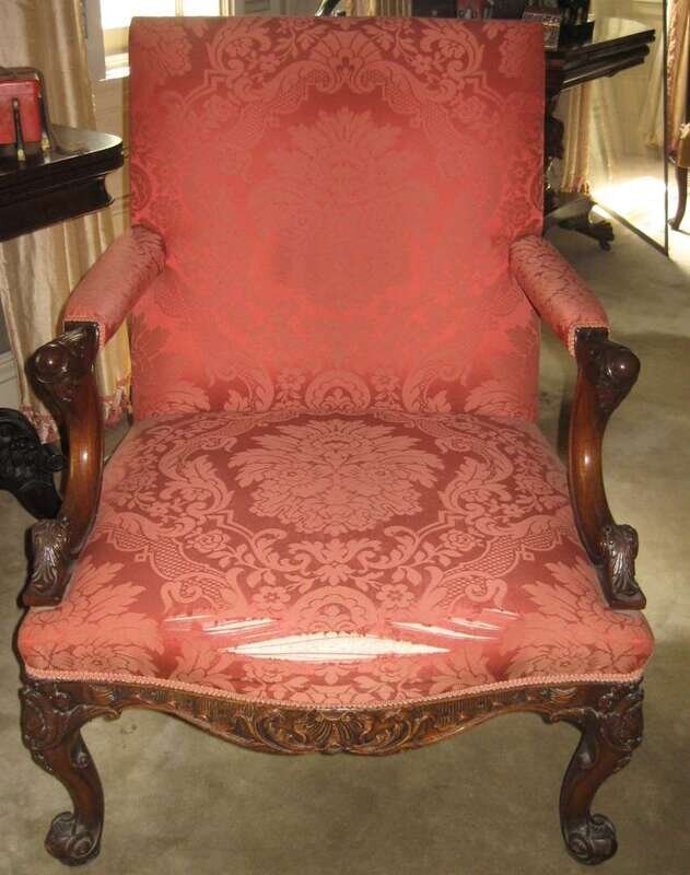 George II style mahogany upholstered library armchair 19th century