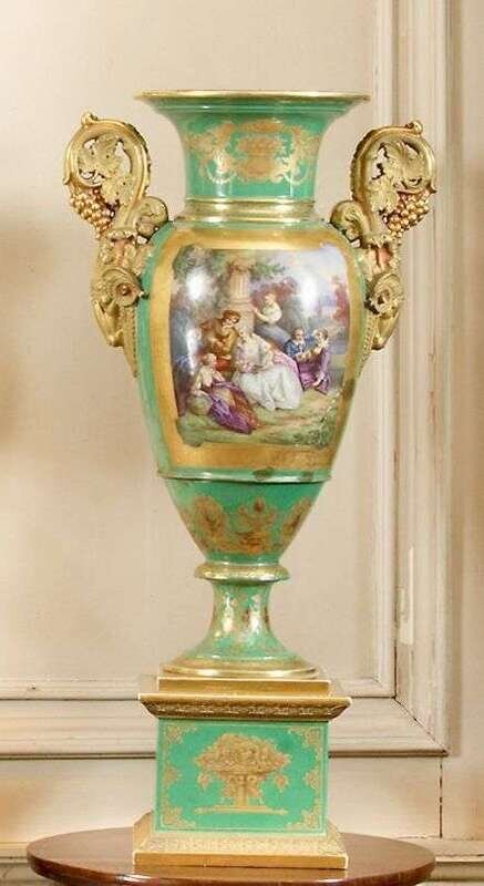 Pair of large Sevres style porcelain urns 19th century