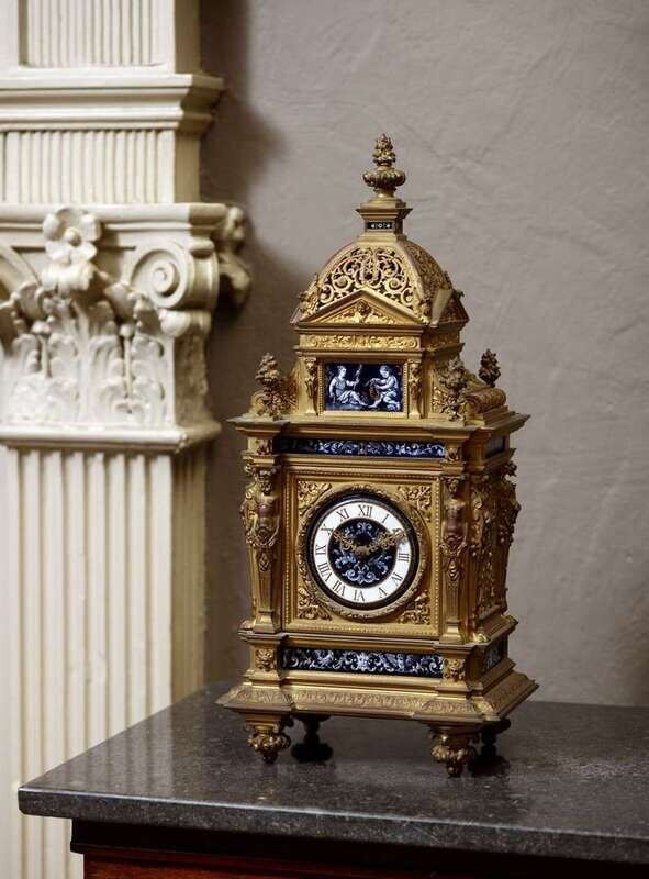 French Renaissance Revival gilt bronze and enamel table clock late 19th century