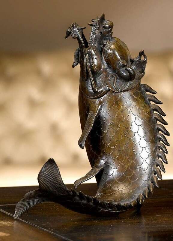 Japanese patinated bronze carp figure